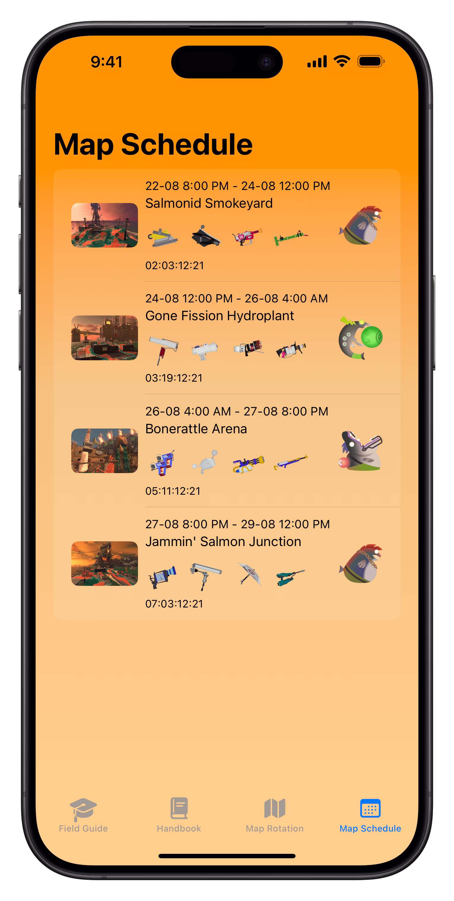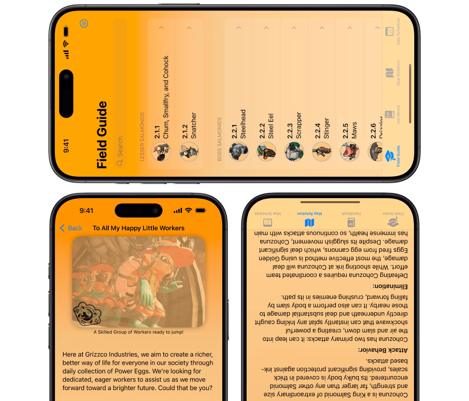 Grizzco Handbook is completely free — no ads, no in-app purchases, just everything you need for Salmon Run. Download now and enjoy!